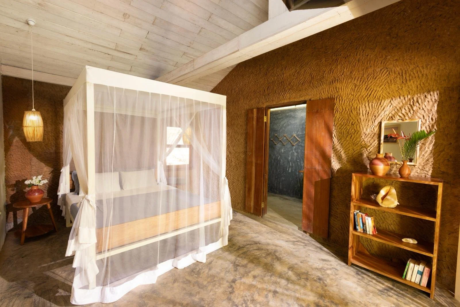 King-size bed with mosquito net